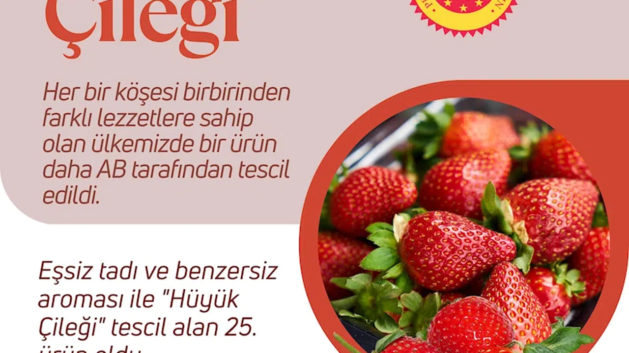 Tarım ve Orman Bakanlığı'ndan yapılan açıklamaya göre; bakanlık ve paydaş kurumlar tarafından yürütülen çalışmalar sonucunda Hüyük çileği, AB'den coğrafi işaret tescili aldı. Böylece Türkiye'nin AB'den coğrafi işaret alan ürün sayısı, 25'e yükseldi.