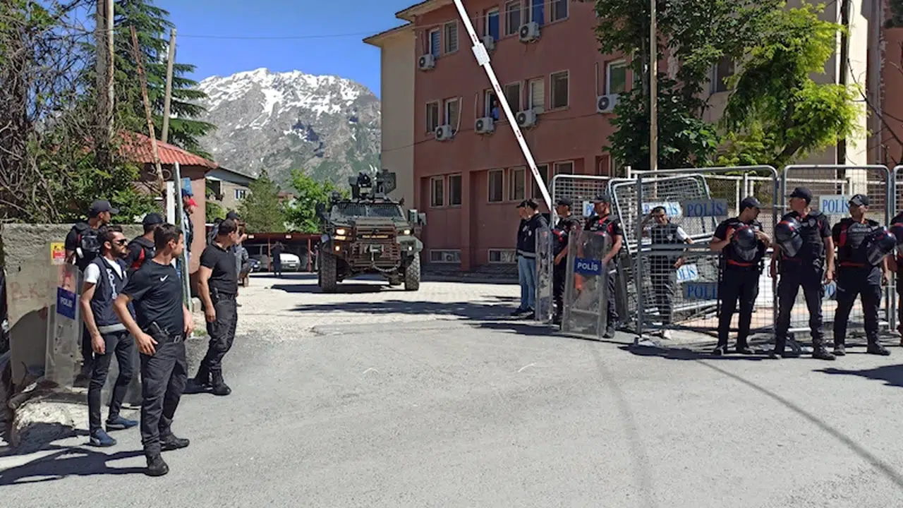İçişleri Bakanlığı tarafından görevden alınan Hakkari Belediye Başkanı Mehmet Sıddık Akış'a ceza verilmesinin ardından Hakkari kent merkezinde toplanan ve yürümek isteyen grup ile güvenlik güçleri arasında gerginlik yaşandı. Yürümek isteyen gruba polis ekipleri izin vermedi. Aralarında DEM Parti Eş Genel Başkanı Tülay Hatimoğulları Oruç ve milletvekillerinin bulunduğu bir grup da valilik binası önüne gelerek kararı protesto etti. Polisin kent genelinde güvenlik önlemleri ise sürüyor. (DHA)