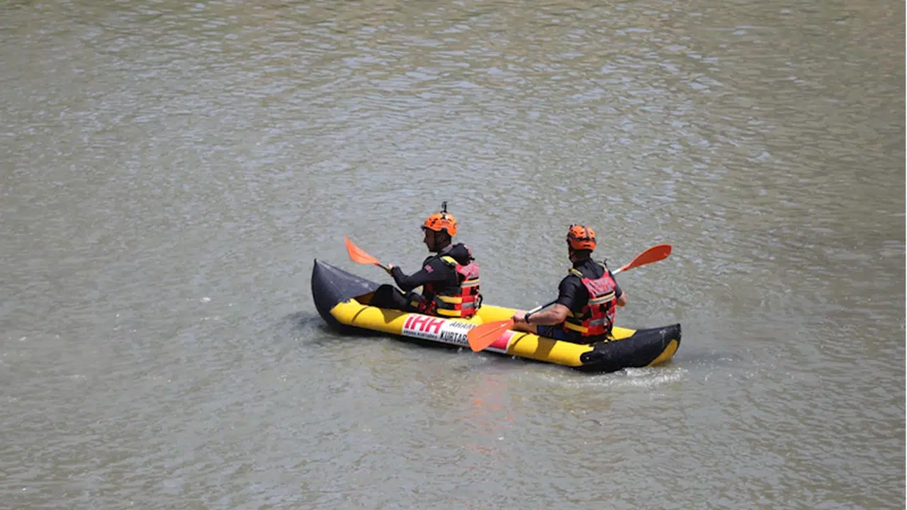 Canik ilçesinde Mert Irmağı üzerinde bulunan bendin yıkılmasının işlendiği tatbikatta suya kapılan bir kişi, ekipler tarafından kurtarıldı.