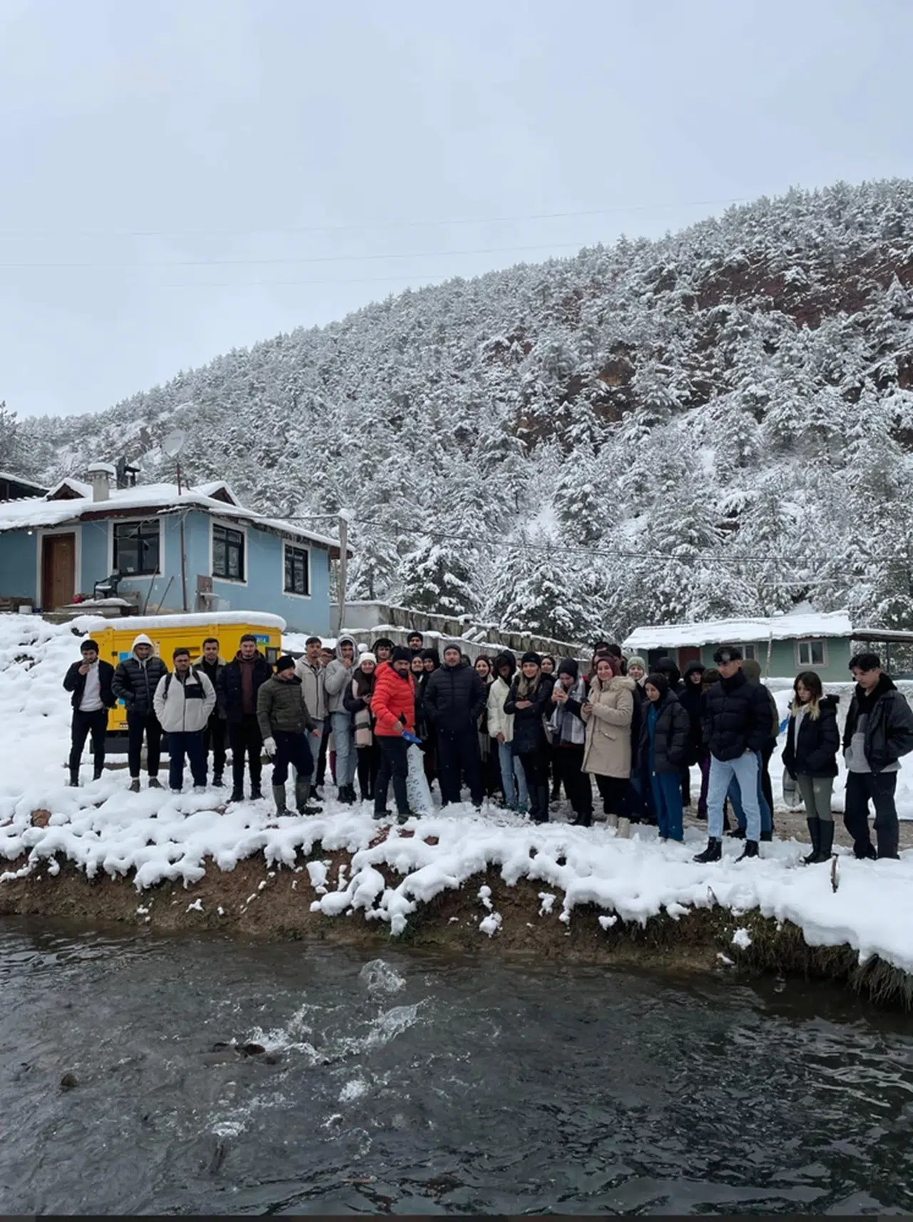 Öğretim görevlisi Abdullah Şimşek ve Doç. Dr. Soner Bilen öncülüğünde ders kapsamında Çankırı'da bulunan balık işletmesini gezen öğrencilere balık yetiştiriciliği hakkında bilgi verildi.