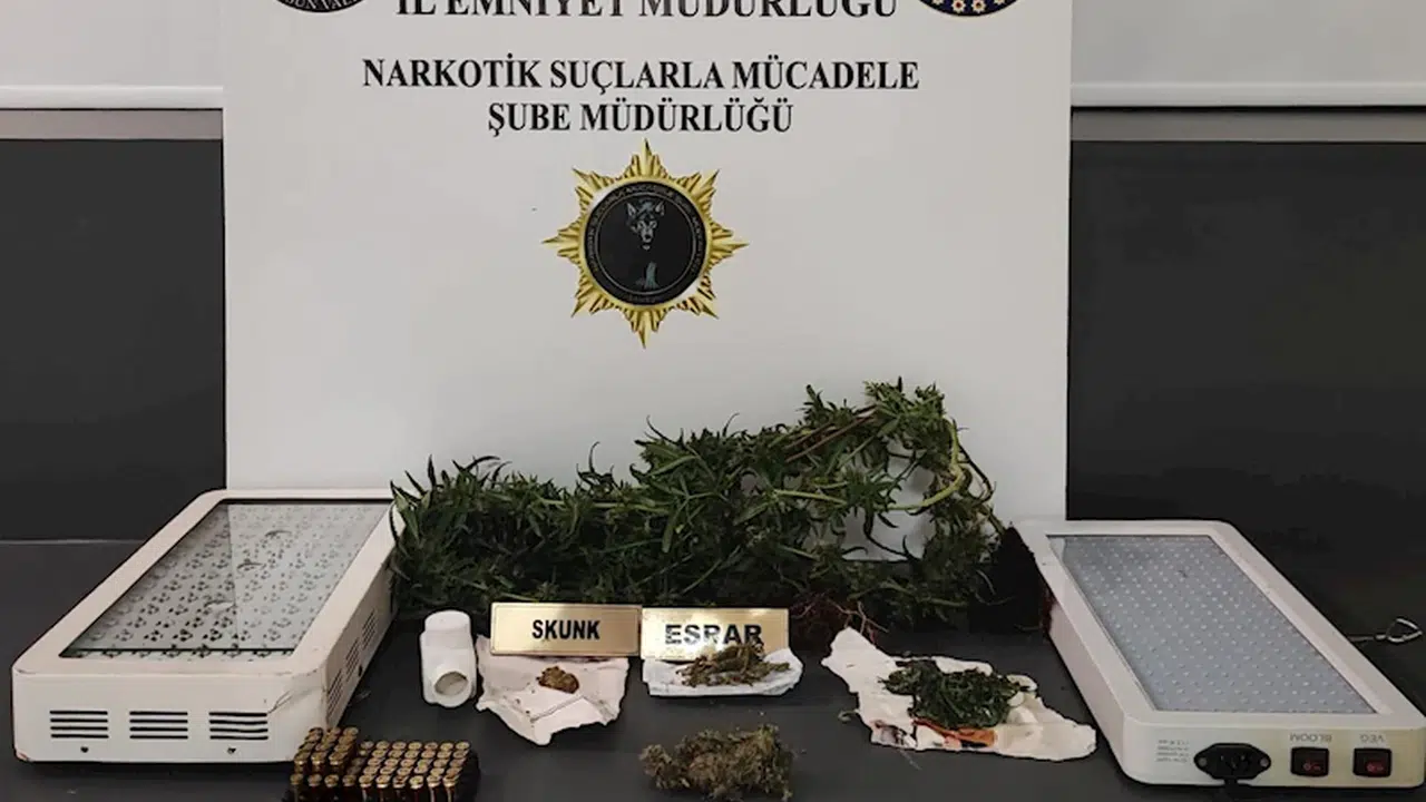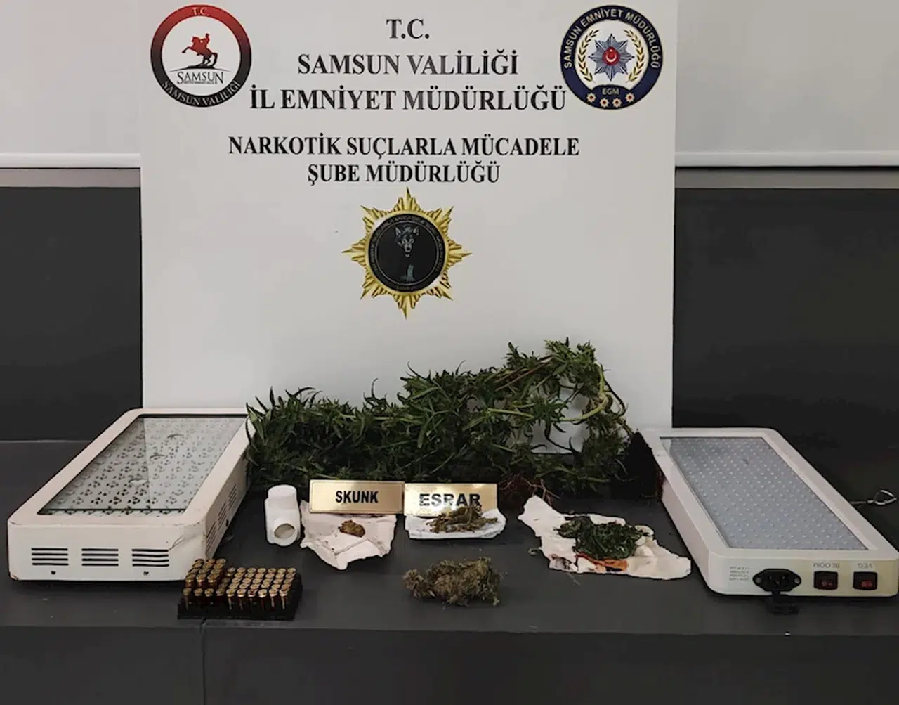 İl Emniyet Müdürlüğü Narkotik Suçlarla Mücadele Şube Müdürlüğü ekipleri, uyuşturucu ile mücadele kapsamında yaptıkları takip ve çalışmalarda, M.B.’nin (35) Atakum ilçesinde uyuşturucu ticareti yaptığı bilgisine ulaşıldı. Şüphelinin evine düzenlenen operasyonda yapılan aramalarda, özel bir iklimlendirme düzeneğine kurulmuş 14,37 gram esrar, 1,50 gram skunk, 2 kök kenevir bitkisi ve 50 tabanca ele geçirildi. Gözaltına alınan M.B.’nin ayrıca ‘uyuşturucu madde kullanmak’ suçundan 2 yıl 1 ay kesinleşmiş hapis cezasının bulunduğu tespit edildi. (DHA)