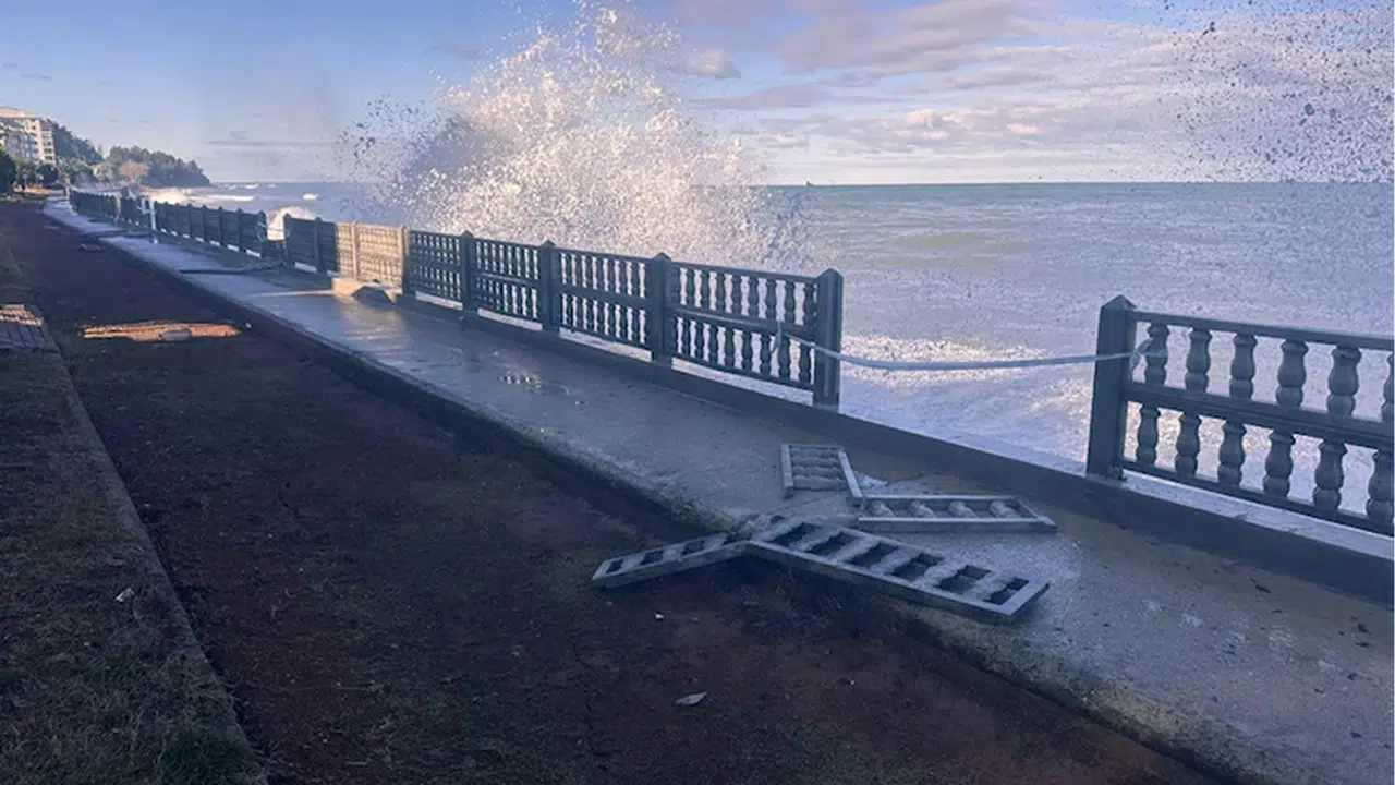 Dalgalar, sahilde bulunan çocuk oyun parkı ve tretuvarlarda hasara yol açtı.