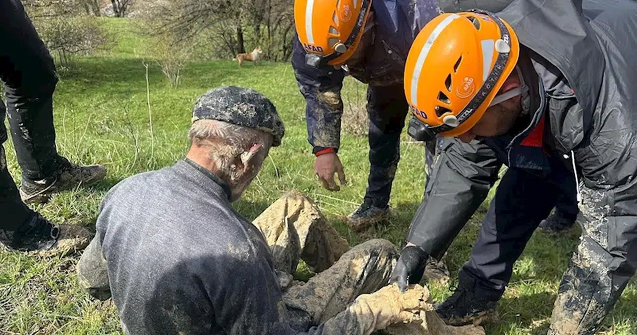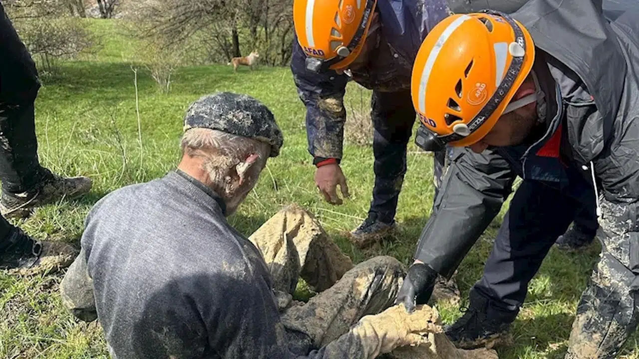 Oğuzhan ÇİFCİ/SUŞEHRİ (Sivas), (DHA)- SİVAS'ın Suşehri ilçesinde ineği ile birlikte çamura saplanan İsmail Ünsal (88), AFAD ekipleri tarafından kurtarıldı.