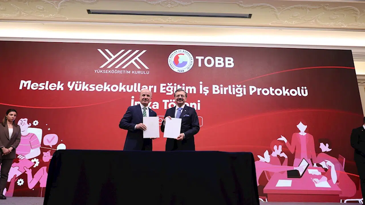 Ayşenur DEMİRTAŞ GÜL-Ali Oğulcan ARSLAN/ANKARA, (DHA)- YÜKSEKÖĞRETİM Kurulu (YÖK) ile Türkiye Odalar ve Borsalar Birliği (TOBB) arasında 'Meslek Yüksekokulları Eğitim İş Birliği Protokolü' imzalandı. Protokol ile 388 meslek yüksekokulu, 367 oda ve borsa ile eşleştirildi. Yüksekokulların programları sektörün ihtiyaçlarına gören güncellenecek, iş dünyasında çalışan tecrübeli isimler de yüksekokullarda ders verecek.