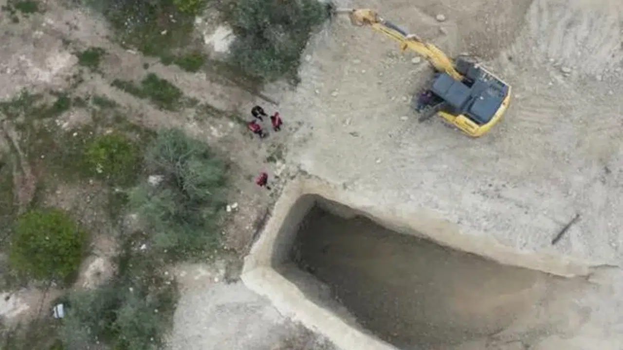 İş makinesiyle define arayan 2 şüpheli suçüstü yakalandı