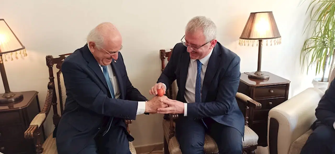 Ufuk AKTUĞ/İSKENDERUN(Hatay),(DHA)- İSKENDERUN protokolü, hoşgörü çerçevesinde gerçekleştirilen Paskalya Bayramı dolayısıyla, Aziz George Rum Ortodoks Kilisesi’ni ziyaret ederek cemaatin bayramını kutlayıp, geleneksel şekilde yumurta tokuşturdu.