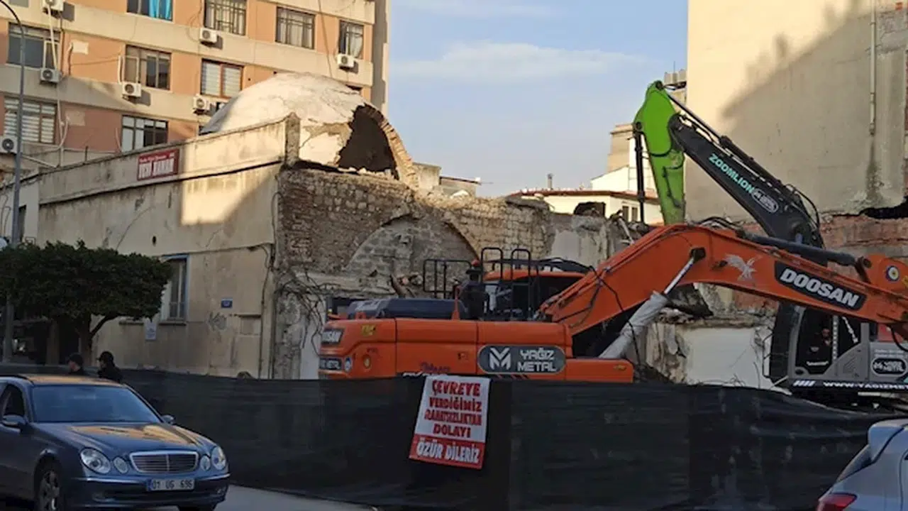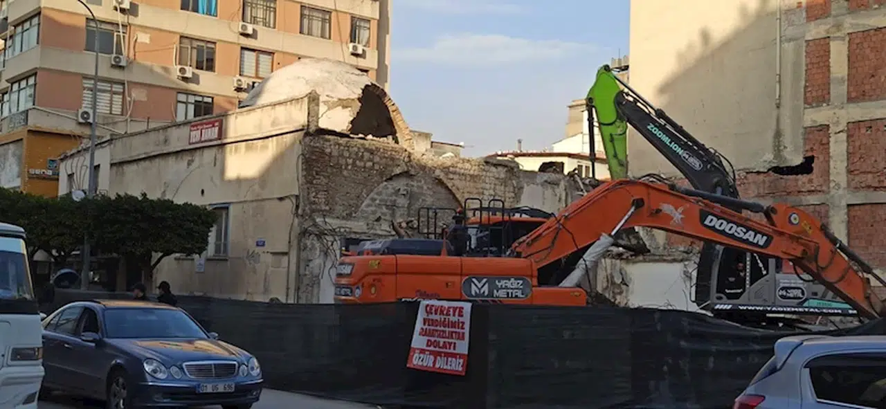 6 Şubat depreminde ağır hasar alan Şehit Pamir Caddesi üzerindeki bir binanın yıkımına başlandı. Bu sırada hemen bitişiğinde bulunan ve Osmanlı döneminden kalma hamamın kubbesinin bir kısmı da yıkıldı. Depremde de hasar gören hamamın restorasyon yapılması için kapalı olduğu bildirildi. (DHA)