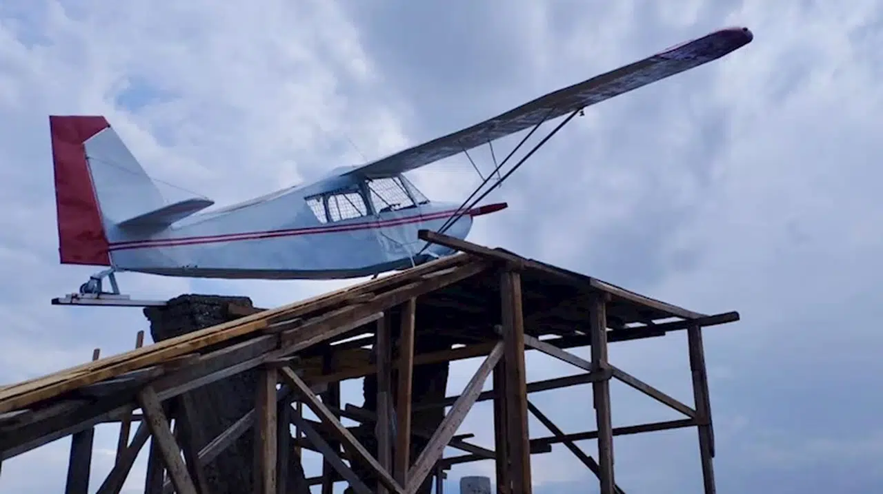 Doğa şartlarından ötürü oluşan deformeleri giderilen uçak maketi, 4 yıl aranın ardından tekrar yerine konuldu.