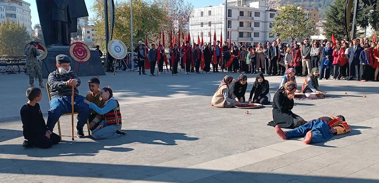 Atatürk Anıtına çelenkler konularak saygı duruşunda bulunup İstiklal Marşı okunan törende konuşan Belediye Başkanı Kemal Vural,”Mustafa Kemal Atatürk ve silah arkadaşları az imkânlarla, zor şartlarda bu ülkeyi bizlere kazandırdılar. Bu ülkeyi bugün bizler yönetiyorsak gençler yârin sizler yöneteceksiniz, Türk Milleti her zor şartlarda bütün olmayı her zaman bilmiştir“ dedi
