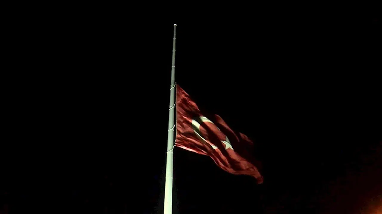 Öte yandan, ilan edilen milli yas sebebiyle yurt genelinde olduğu gibi İstanbul'un sembol noktalarından Çamlıca Tepesi'nde bulunan dev bayrak da yarıya indirildi. (DHA)