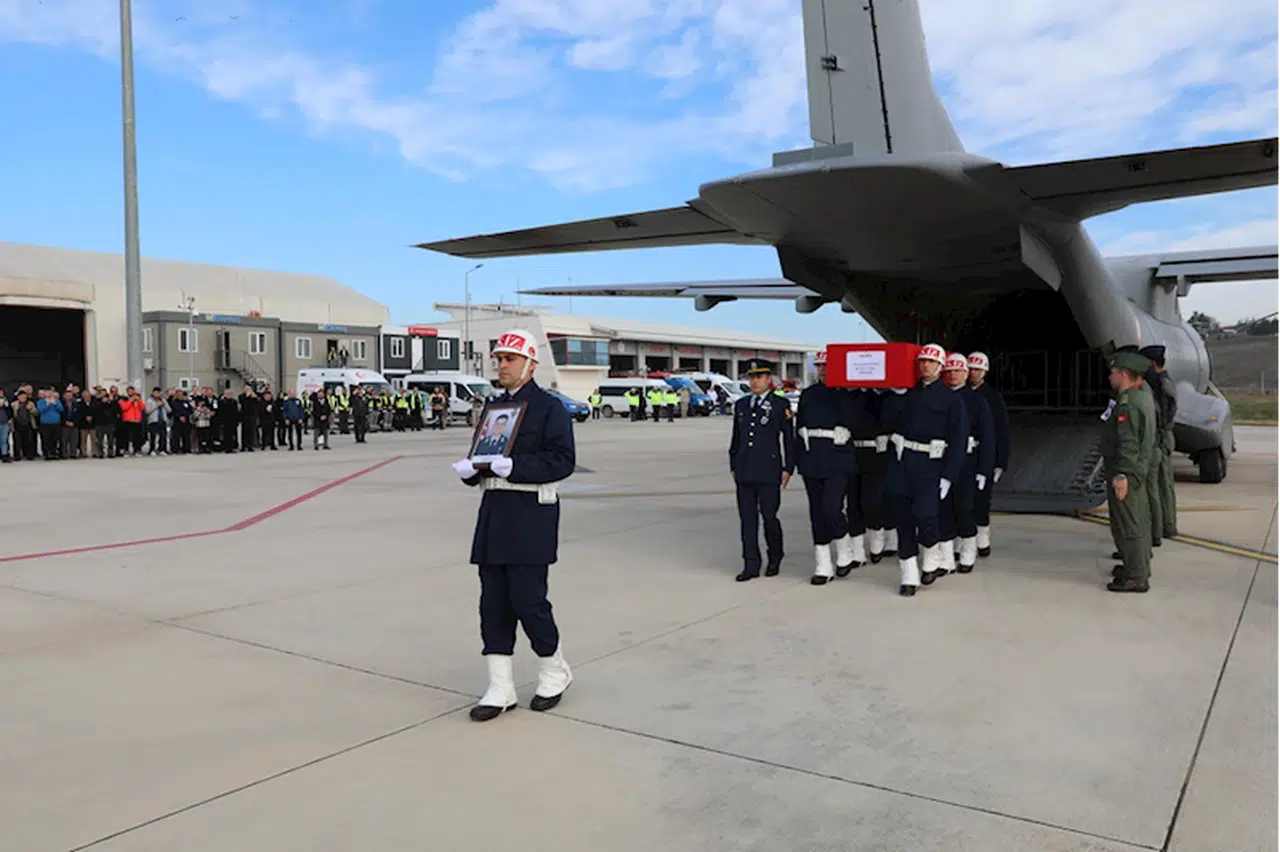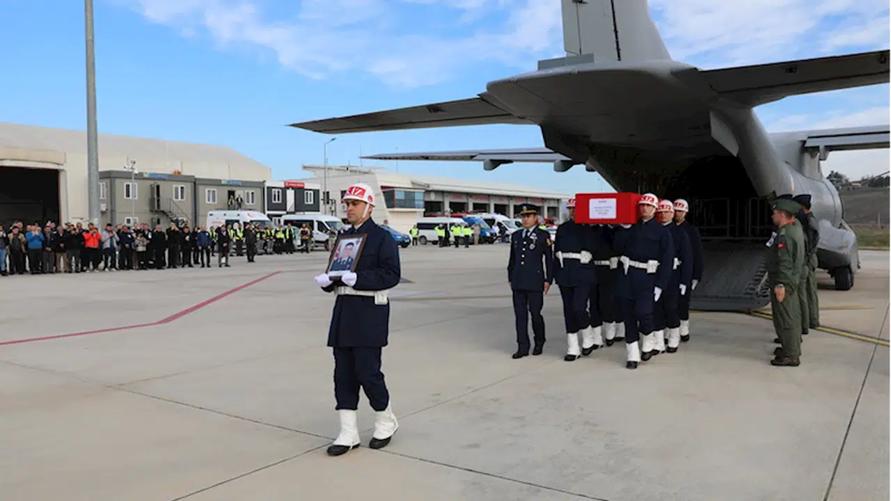 Şehidin Türk bayrağına sarılı tabutunu taşıyan askeri uçak, Amasya Merzifon Havalimanı'na indi.