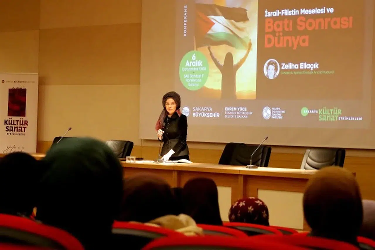 Sakarya Büyükşehir Belediyesi programı kapsamında SAÜ’de “Batı Sonrası Dünya” konferansı veren Anadolu Ajansı (AA) Stratejik Analiz Müdürü Zeliha Eliaçık, İsrail-Filistin Meselesi’ne üzerine dikkat çekici analizler paylaştı.