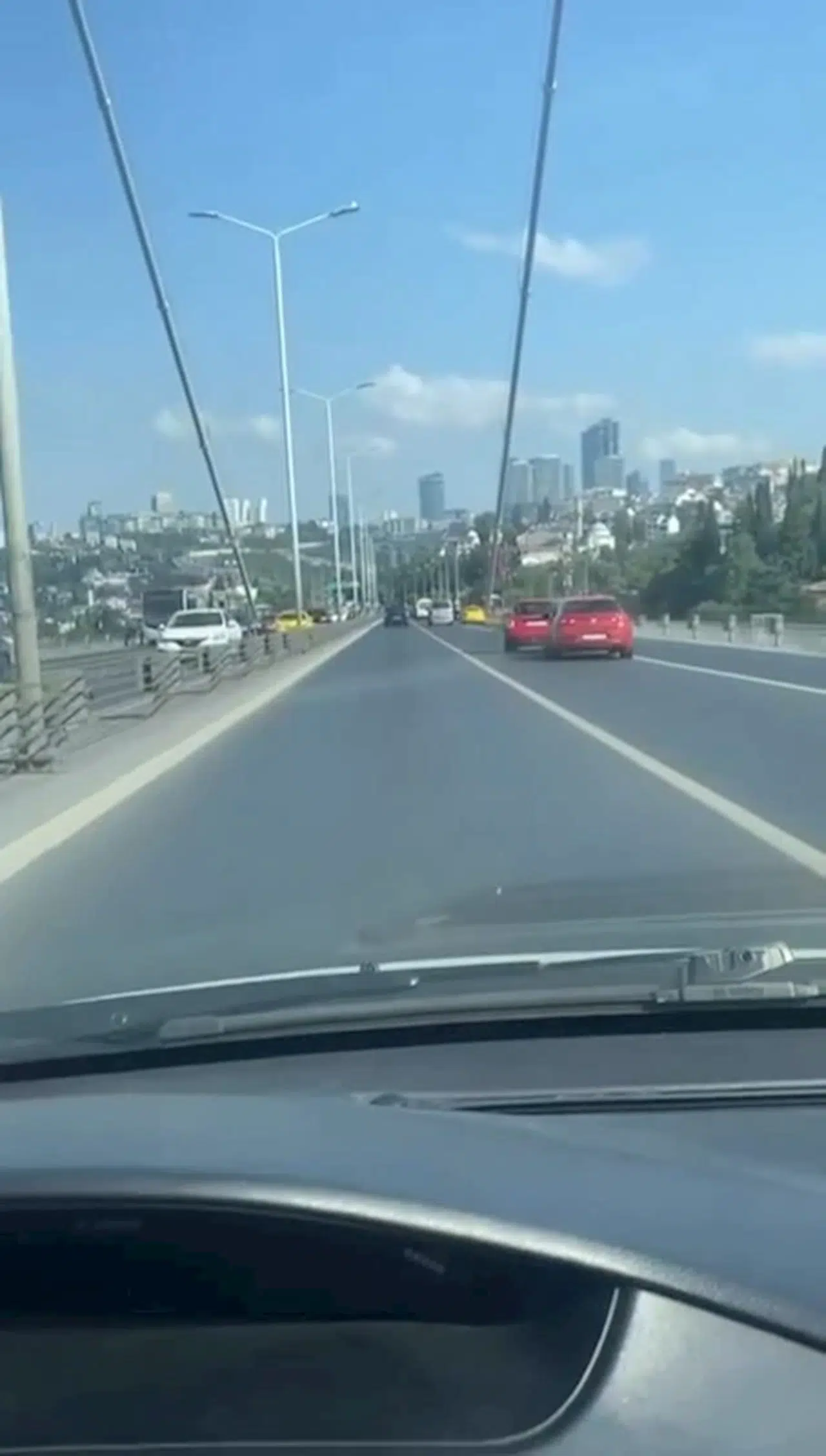 Cengiz ÇOBAN/İSTANBUL,(DHA)15 TEMMUZ Şehitler Köprüsü’nde iki araç sürücüsü arasında yol verme nedeniyle başlayan tartışma inatlaşmaya dönüştü. İki sürücü arasındaki inatlaşma trafikteki diğer sürücülerin cep telefonu kamerasına yansıdı.