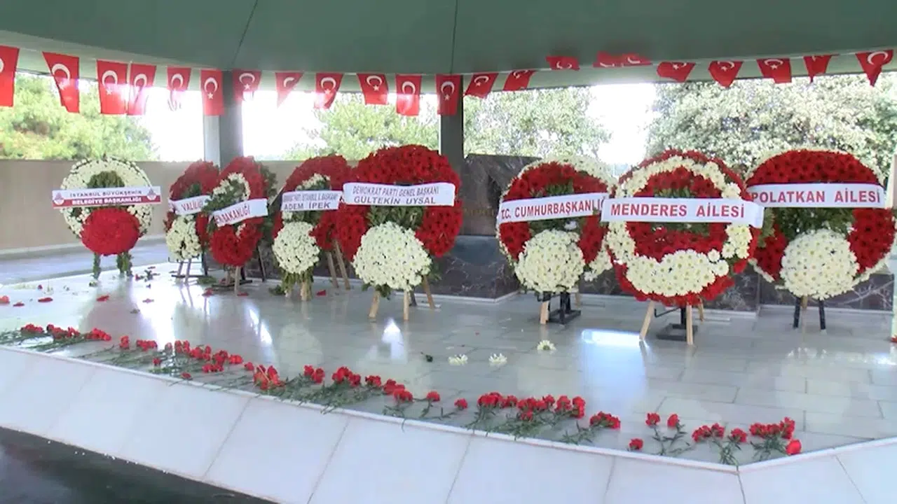 Merhum Başbakan Adnan Menderes, Dışişleri Bakanı Fatin Rüştü Zorlu ve Maliye Bakanı Hasan Polatkan, idam edilişlerinin 63'üncü yılında Topkapı'daki anıt mezarda düzenlenen törenle anıldı. Törene İçişleri Bakanı Ali Yerlikaya, İstanbul Valisi Davut Gül, İstanbul Büyükşehir Belediye Başkanı Ekrem İmamoğlu, İstanbul İl Jandarma Komutanı Tümgeneral Yusuf Kenan Topçu, İstanbul İl Emniyet Müdürü Zafer Aktaş, Sahil Güvenlik Marmara ve Boğazlar Bölge Komutanı Tuğamiral Serkan Tezel, AK Parti Genel Başkan Yardımcısı Ömer İleri, Ak Parti İstanbul İl Başkanı Osman Nuri Kabaktepe ve çok sayıda vatandaş katıldı. Tören Kuran'ı Kerim okunmasıyla başlarken, Menderes, Polatkan ve Zorlu için dualar edildi. Menderes'in kabrine karanfil bırakıldı. Daha sonra 8'inci Cumhurbaşkanı Turgut Özal'ın kabri ziyaret edilerek dua edildi ve karanfil bırakıldı.