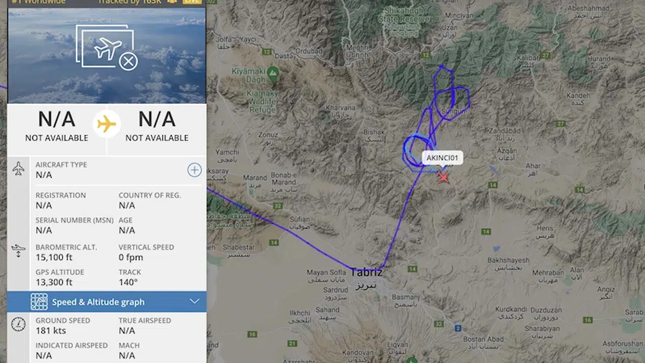 İbrahim YILDIZ / İSTANBUL, (DHA)- İRAN Cumhurbaşkanı İbrahim Reisi'nin hayatını kaybettiği helikopter kazasında enkazın bulunduğu bölgeyi tespit eden Akıncı İHA'nin yaptığı uçuşu, takip sistemi flightradar24 sitesinden 2,8 milyon kişi izledi.
