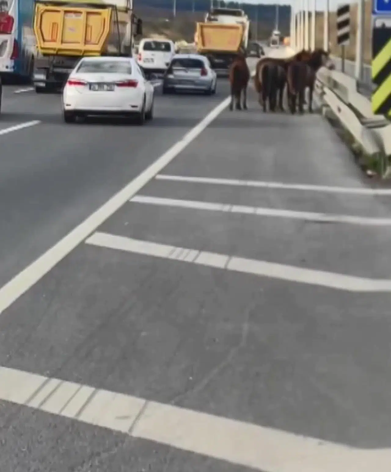 Olay, İstanbul Havalimanı yolu D-20 Karayolunda sabah saatlerinde meydana geldi.İstanbul Havalimanı yolunda seyreden sürücüler yolda at sürüsüyle karşılaştı. Akan trafiğin ortasında başı boş dolaşan atlar trafiği tehlikeye attı.Başı boş dolaşan atlar nedeniyle yolda seyreden sürücüler hızlarını düşürünce uzun süre trafik yoğunluğu oluştu. Bir sürücü, atların önünü kesmek için aracıyla manevra yaptı ancak başarılı olamadı. Bu sırada yolda dolaşan atlardan biri ticari aracın çarpmasıyla öldü. Araçta ise, maddi hasar meydana geldi. Atların karayolunda başı boş dolaşıp trafiği tehlikeye attığı anlar ve oluşan trafik yoğunluğu cep telefonu kameralarına yansıdı.(DHA)