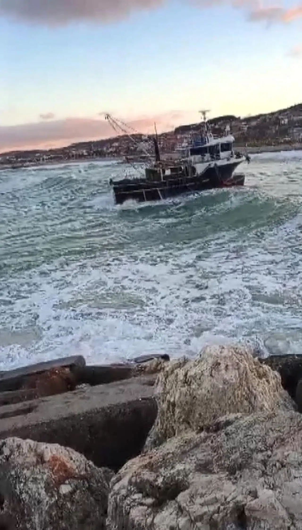 Dalgalar arasında alabora olmaktan son anda kurtulan balıkçı teknesi limana yanaşmak için hızlandığı sırada bir kez daha tehlike atlattı. Rüzgarın da etkisiyle sallanan tekne güçlükle limana yanaştı. Teknenin dalgalar arasında güçlükle ilerlemesi ve bir süre sürüklenmesi cep telefonu kamerasına saniye saniye yansıdı.(DHA)