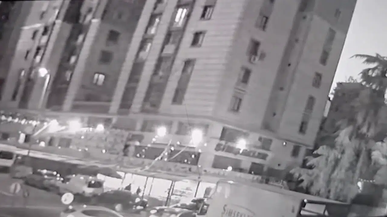 Doğalgaz parlaması sebebiyle panikleyen Dursun Erol'un binanın 7'nci katından atladığı anlar, sokaktaki bir iş yerinin güvenlik kamerası tarafından kaydedildi. Görüntülerde, Erol'un yere düştüğü anlar yer alıyor.