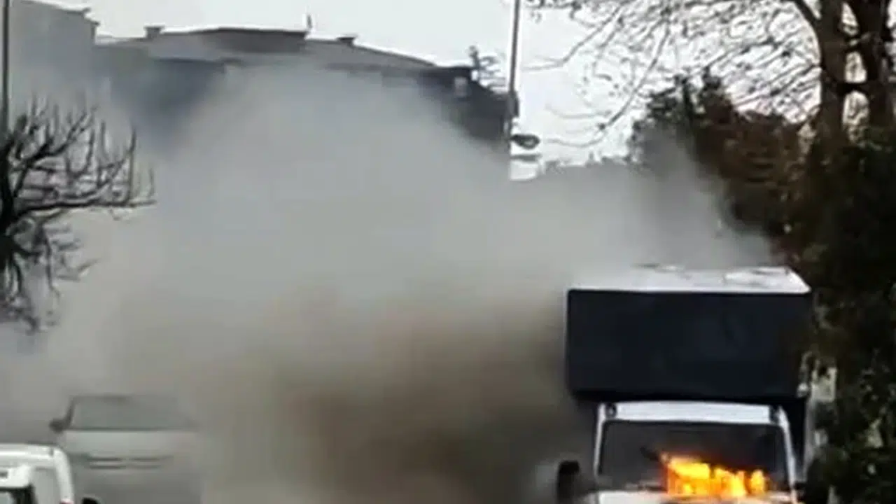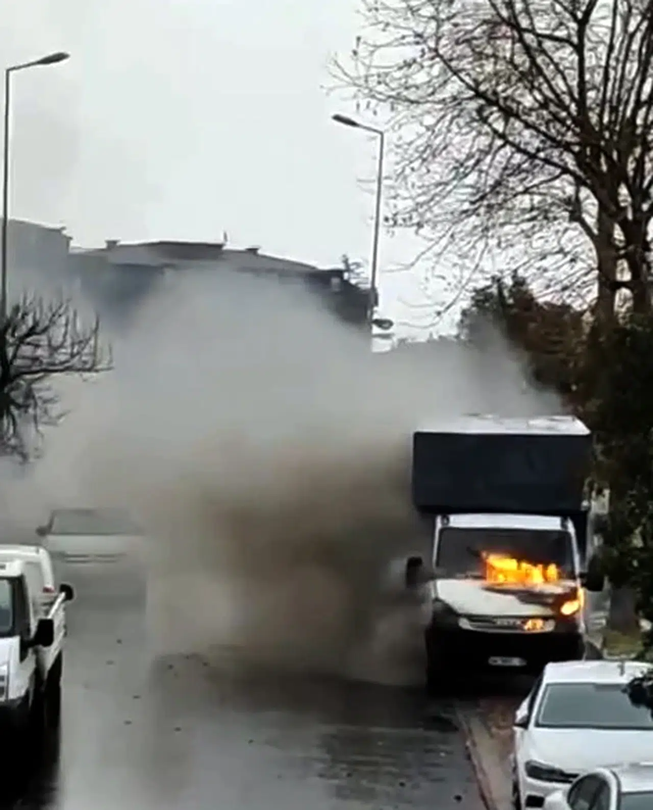 Yangın, dün saat 09.00 sıralarında Ambarlı Mahallesi'nde Şehit Üsteğmen Oğuz Kaan Usta Sokak'ta park halinde bulunan kamyonette çıktı. Ahmet Burak'a ait olduğu öğrenilen 34 MYL 12 plakalı kamyonetin motor kısmından bilinmeyen bir nedenle alevler yükseldi. Çevre sakinleri itfaiyeye haber verirken, yanan araç cep telefonu kameralarıyla görüntülendi. Kısa sürede olay yerine gelen itfaiye ekibi, alevleri kontrol altına alarak yangını büyümeden söndürdü. Yangının çıkış nedeniyle ilgili inceleme başlatıldı. (DHA)