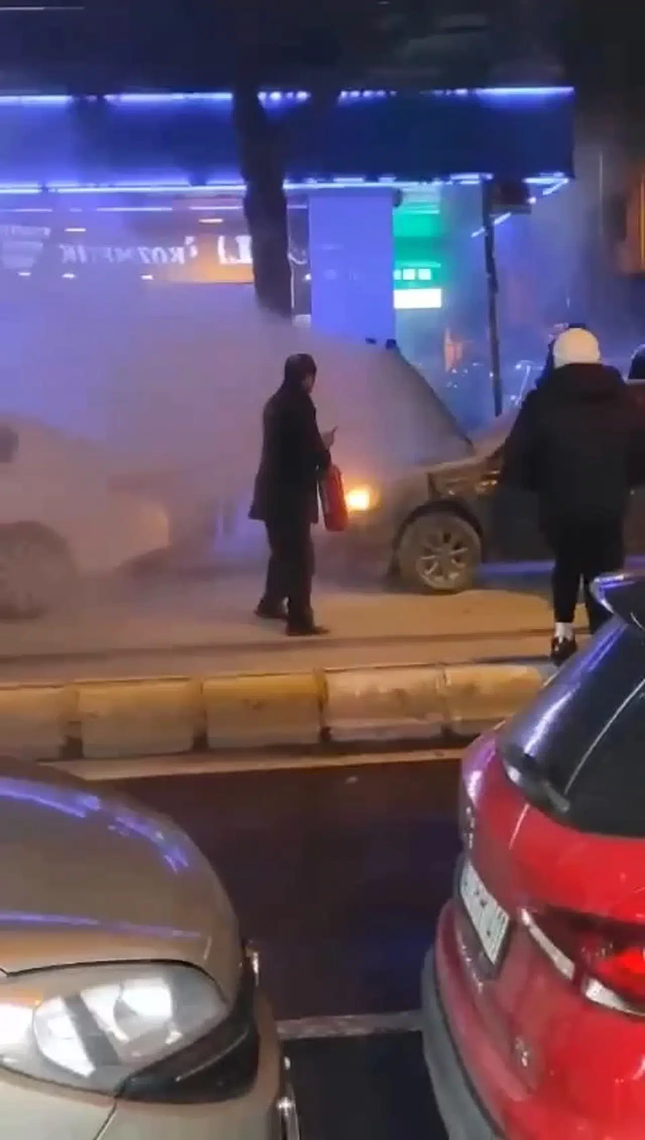 Yangın, saat 22.00 sıralarında Yıldıztepe Mahallesi Bağcılar Caddesi'nde park halinde bulunan otomobilde çıktı. Motor kısmından yükselen dumanı gören çevredeki vatandaşlar, yangın söndürme tüpü ve su ile alev alev yanan otomobile müdahale etti. Vatandaşlar, araçtaki yangını kısa sürede söndürürken, o anlar cep telefonu kamerasına yansıdı. (DHA)