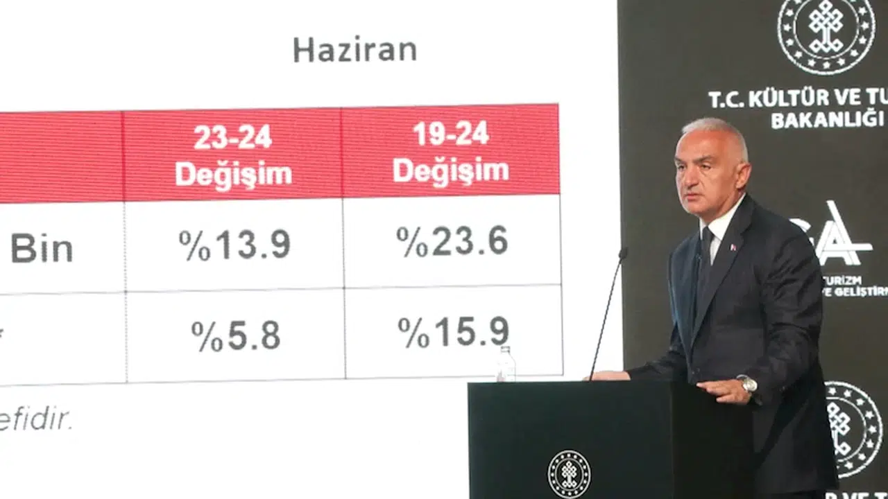 Atatürk Kültür Merkezi’nde (AKM) basın toplantısı düzenleyen Kültür ve Turizm Bakanı Mehmet Nuri Ersoy, 2024 yılı ilk 6 aylık turizm verilerini ve turizmdeki yeni hedefleri açıkladı. Bakan Ersoy, bu sene ilk 6 ayda 26 milyon 137 bin ziyaretçi rakamıyla rekor bir seviyeye ulaşmış olduklarını belirtti.