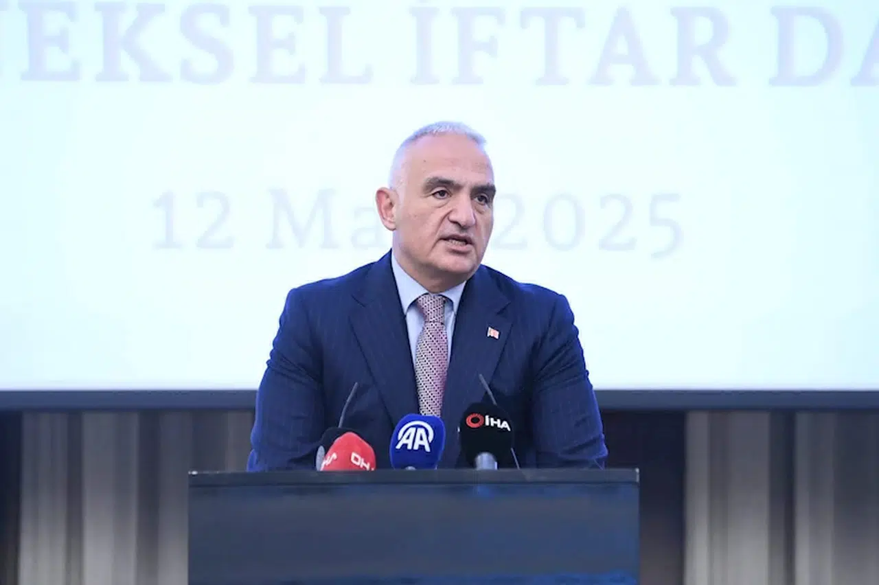 Kültür ve Turizm Bakanı Mehmet Nuri Ersoy, Geleneksel Cemaat Vakıfları İftar Programı'na katıldı. Şişli'deki bir otelde düzenlenen programda cemaat vakıflarının temsilcileri ile bir araya gelen Bakan Ersoy, "Güce açtık, kibir, ırkçılık ötekileştirme, gözümüzü nereye çevirirsek çevirelim, bu kişilikteki insanların sebep olduğu yıkımı, acıyı, kan ve gözyaşını görüyoruz. Maalesef daha kötüye gitmesi Için yoğun çaba gösterenler, zulmünü kendiyle yarıştırırcasına daha da artıranlar var. Bizler her gün böylesi bir gündemde uyanan dünyada çocuklarımızın kin ve düşmanlık olmadan huzur ve refah içinde yaşayabilecekleri yarınlara dair umudu ayakta tutmanın gayretini vermekteyiz. İnanıyorum ki bu özel iftar sofrasını paylaşan herkes de, bizi bir araya getiren insani ve vicdani değerlerin bütün dünyada benimsenmesini, her kalpte yer bulmasını temenni etmektedir. Tertip ettiğimiz bu birliktelik, paylaştığımız bu iftar sofrası, farklılıkların insan olmanın ortak paydasında nasıl bir araya gelebildiğini, zenginliğe dönüşebildiğini gösteren çok değerli bir örnektir. Bizlerin bir arada oluşu, asırların süzgeçinden geçmiş olan medeniyetimizin ne denli doğru bir sosyal yapıya ve anlayışa ulaştığını, insana verdiği değerin bir aynası aynı zamanda. Sizlere ve bizlere düşen bu kadim aynayı bugün bizatihi kendi önderleri tarafından ayrımcılığa sürüklenen toplumlara tutmak tutmak, ortak bir ses olarak yanlış söylemleri bastırmak, bir ya da bin kişi demeden insanları doğru yola sevk etmek çağırmaktır.