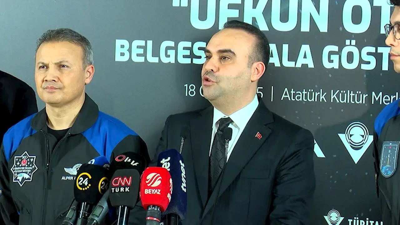 Programda konuşan Sanayi ve Teknoloji Bakanı Mehmet Fatih Kacır, "18 ocak 2024 gecesinin sonrası günler haftalar ve aylar artık Türk gençlerinin, Türk çocuklarının hiçbir hayali kurmaktan vazgeçmeyecekleri bir dönemin işareti oldu. İnanıyorum ki Türk gençleri, Türk çocukları, Teknofest kuşağı daha nice büyük işler başaracak. Bizlerde o büyük işlerin başlangıç adımlarına şahitlik etmenin iftiharını, gururunu paylaşacağız. Bütün bu misyonların gerçekleşmesi Sayın Cumhurbaşkanımızın güçlü iradesi sayesinde mümkün oldu. Milli uzay programının iddialı hedeflerini dünyaya duyurulduğu günden itibaren Sayın Cumhurbaşkanımız her fırsatta, her bir hedefimizde hangi aşamaya geldiğimizi ve milletimizin geleceği için hangi hedefleri ortaya koymak gerektiğini bizlerle istişare ettiler. Ben bu misyonun icraasında engelleri cesaretiyle, azmiyle ve gayretiyle Türk milletine ve Türk çocuklarına ilham kaynağı olan ilk astronotumuz Alper Gezeravcı’yı huzurlarınızda bir kez daha tebrik etmek istiyorum. Gezeravcı’nın açtığı yolda bir adım daha atan ikinci astronotumuz Tuva Cihangir Atasever’e de huzurlarınızda teşekkür ediyorum. Bütün bu heyecanı milletimizle ve dünyayla paylaşmak üzere çok zorlu koşullarda bu belgeselin hazırlanmasına liderlik eden değerli yönetmenimiz Burcu Camcıoğlu’nu da huzurlarınızda kutlamak istiyorum" dedi.