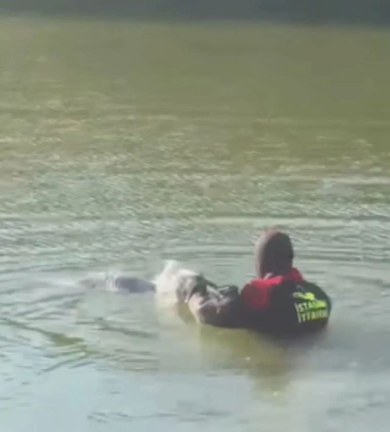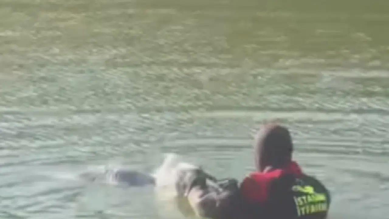 İstanbul - Bakırköy'de kanadına dolanan ip nedeniyle gölette mahsur kalan martı kurtarıldı