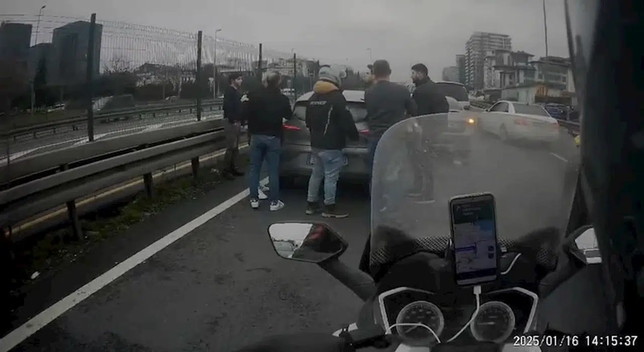 Olay, dün saat 15.30 sıralarında Ataköy Mahallesi D-100 Otoyolu Ankara istikametinde meydana geldi. İddiaya göre, seyir halinde olan iki otomobilin sürücüsü arasında yol verme nedeniyle tartışma çıktı. Tartışma sırasında sürücülerden biri kullandığı otomobille diğer otomobile arkadan çarptı. Bunun üzerine araçtan inen iki sürücü yol ortasında kavga etmeye başladı. Kaza nedeniyle araç yoğunluğu oluşan yolda, diğer sürücüler araya girerek kavgayı ayırmaya çalıştı. Kavga anları trafikteki bir motosiklet sürücüsünün kask kamerasına yansıdı.