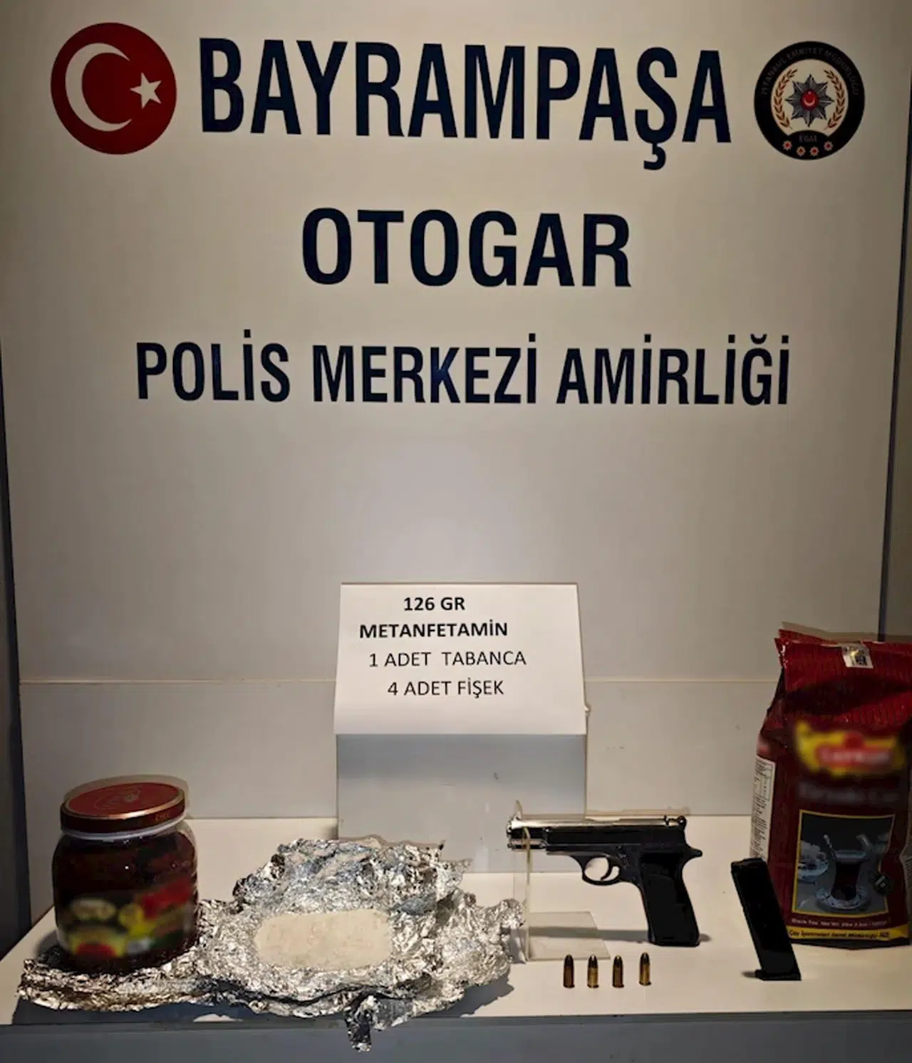 İstanbul Emniyet Müdürlüğü'ne bağlı polis ekipleri, uyuşturucu ticareti yaptıkları tespit edilen S.T. (22), B.M. (21) ve S.T.’nin (23) bir koliyle Bayrampaşa’daki 15 Temmuz Demokrasi Otogarı'na gittiğini belirledi. Ekipler şüphelilerin uyuşturucu kaçıracağından şüphelenerek operasyon başlattı. 3 şüphelinin bir otobüs firmasının tarifeli seferine vermek istedikleri koliyi açan ekipler kolide çay ve salça kutusu buldu. Polis ekiplerinin incelemelerinde salça kutusunda 126 gram metamfetin, çay kolisinde ise 1 ruhsatsız tabanca ile 4 fişek ele geçirildi.Konuyla ilgili gözaltına alınan 3 şüpheli emniyetteki işlemlerinin ardından çıkarıldıkları mahkemece tutuklandı.(DHA)