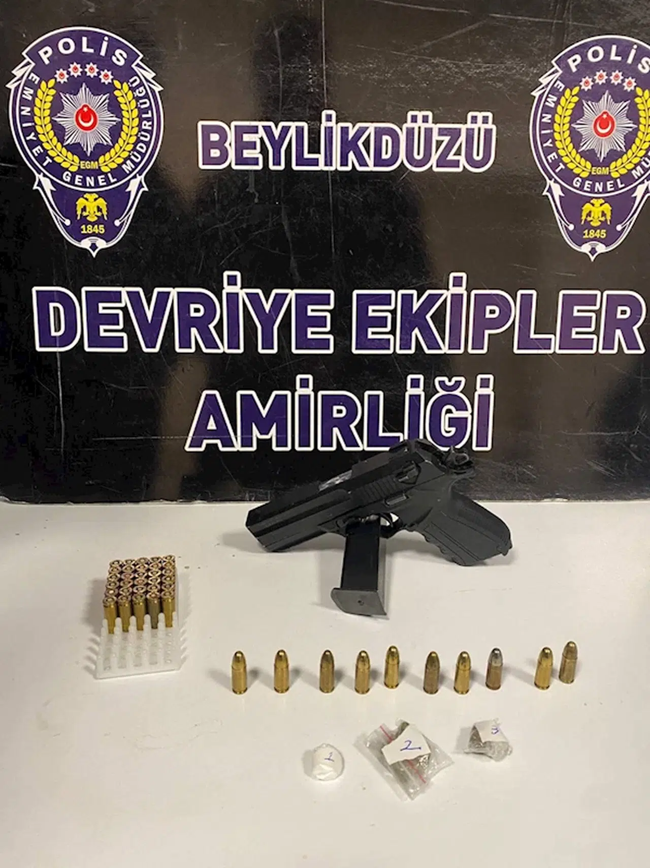 Olay dün gece saatlerinde Marmara Mahallesi'ndeki bir sitede meydana geldi. Sitenin önüne gelen 2 kişi, güvenlik görevlisini silahla tehdit etti. Şüphelilerden biri 1 el havaya ateş etti. İhbar üzerine olay yerine gelen Beylikdüzü İlçe Emniyet Müdürlüğüne bağlı polis ekipleri, S.A. ve T.A. isimli şüphelileri yakalayarak gözaltına aldı. Şüphelilerin üst aramasında, S.A. isimli kişinin üzerinde bir miktar uyuşturucu madde ile olayda kullandığı tabanca ele geçirildi. Şüpheliler emniyetteki işlemlerinin ardından adliyeye sevk edildi. Mahkemeye çıkarılan şüphelilerden S.A. tutuklanırken, T.A. ise adli kontrol şartıyla serbest bırakıldı. (DHA)