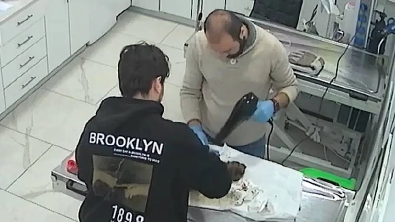 Anne köpeğin yavrusunu ağzında getirip yardım istediği ve köpeğin klinikte çalışanlar tarafından yoğun bakıma alındığı anlar iş yerinin güvenlik kamerasına yansıdı. Görüntülerde anne köpeğin yavrusunun başından ayrılmadığı da görülüyor.