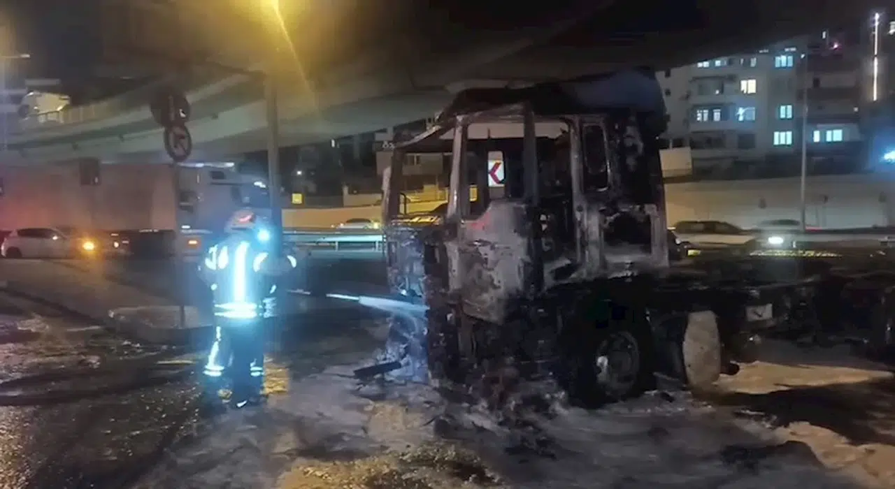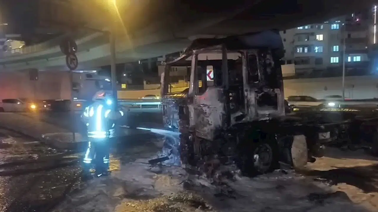 İstanbul - Beylikdüzü’nde seyir halindeki TIR tamamen yandı, sürücü son anda kurtuldu