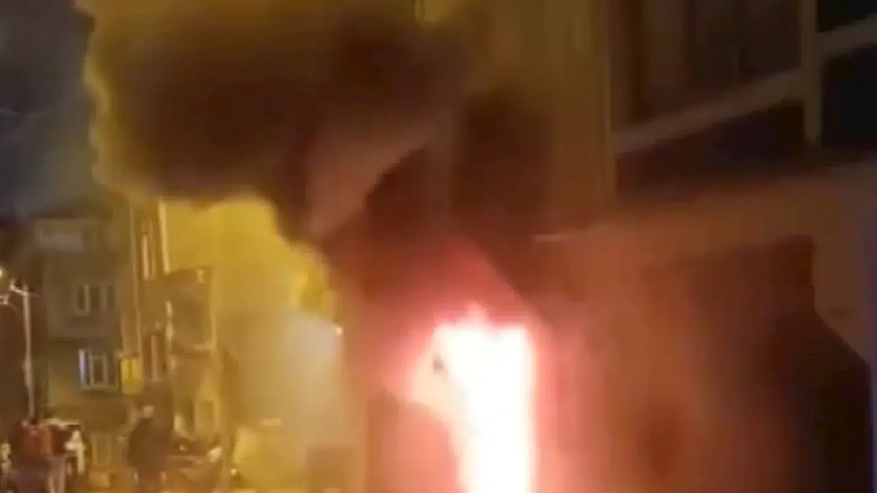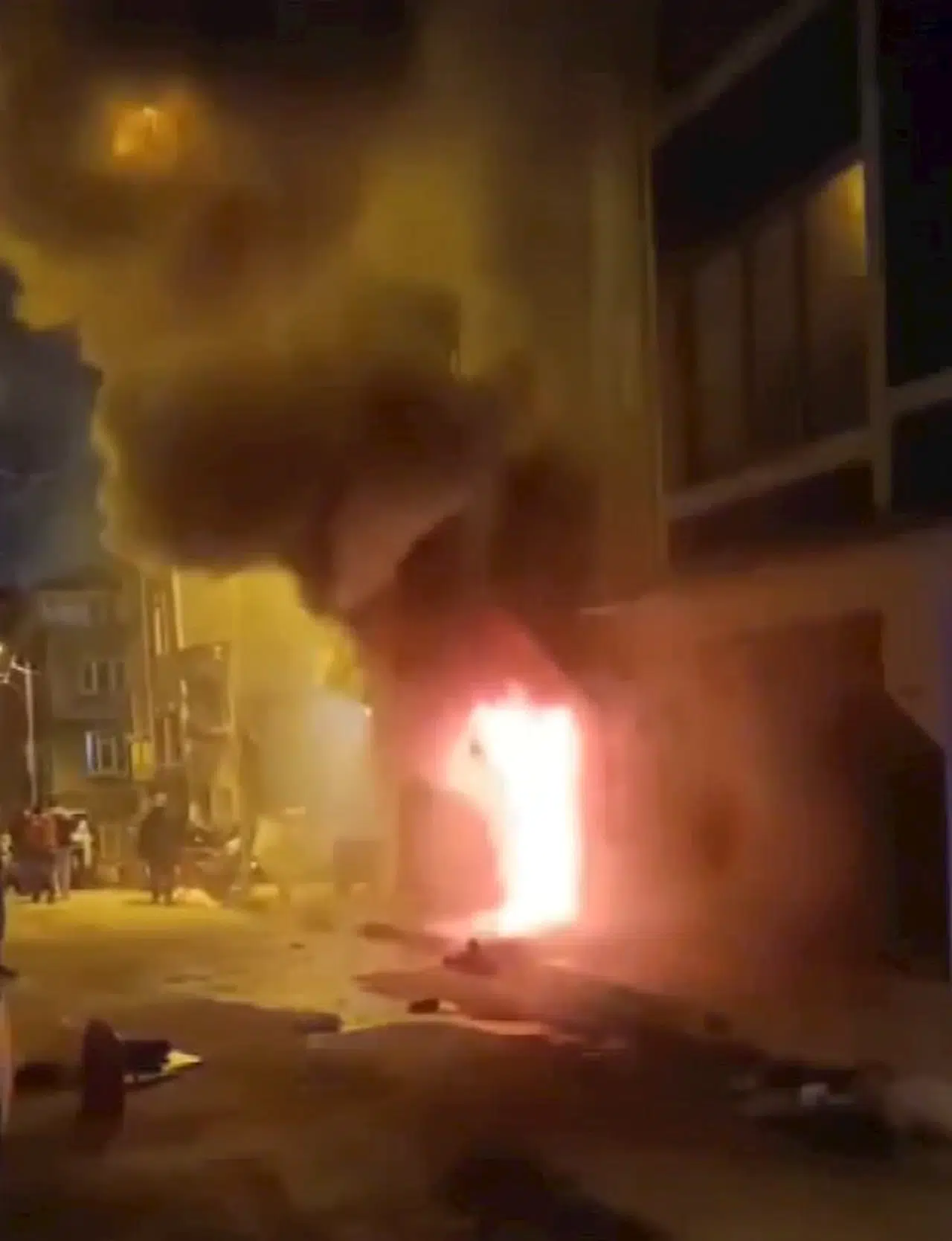 Öte yandan, yangın anında yaşanan panik ve binada mahsur kalanların kendilerini dışarıya atma anları cep telefonu kamerasına yansıdı.