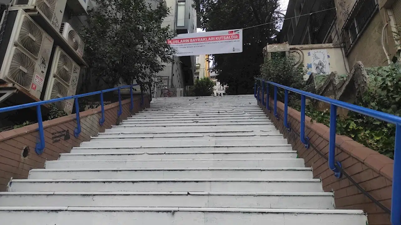 Merdivenler Beyoğlu Belediyesi ekipleri tarafından gece saatlerinde beyaza boyandı. Merdivenlere de "Ulusların Bayrakları kutsaldır. Haklı davasında yanında olduğumuz Filistin Halkını incitmemek adına merdivenlerimizde önlem alınacaktır" yazılı pankart asıldı.