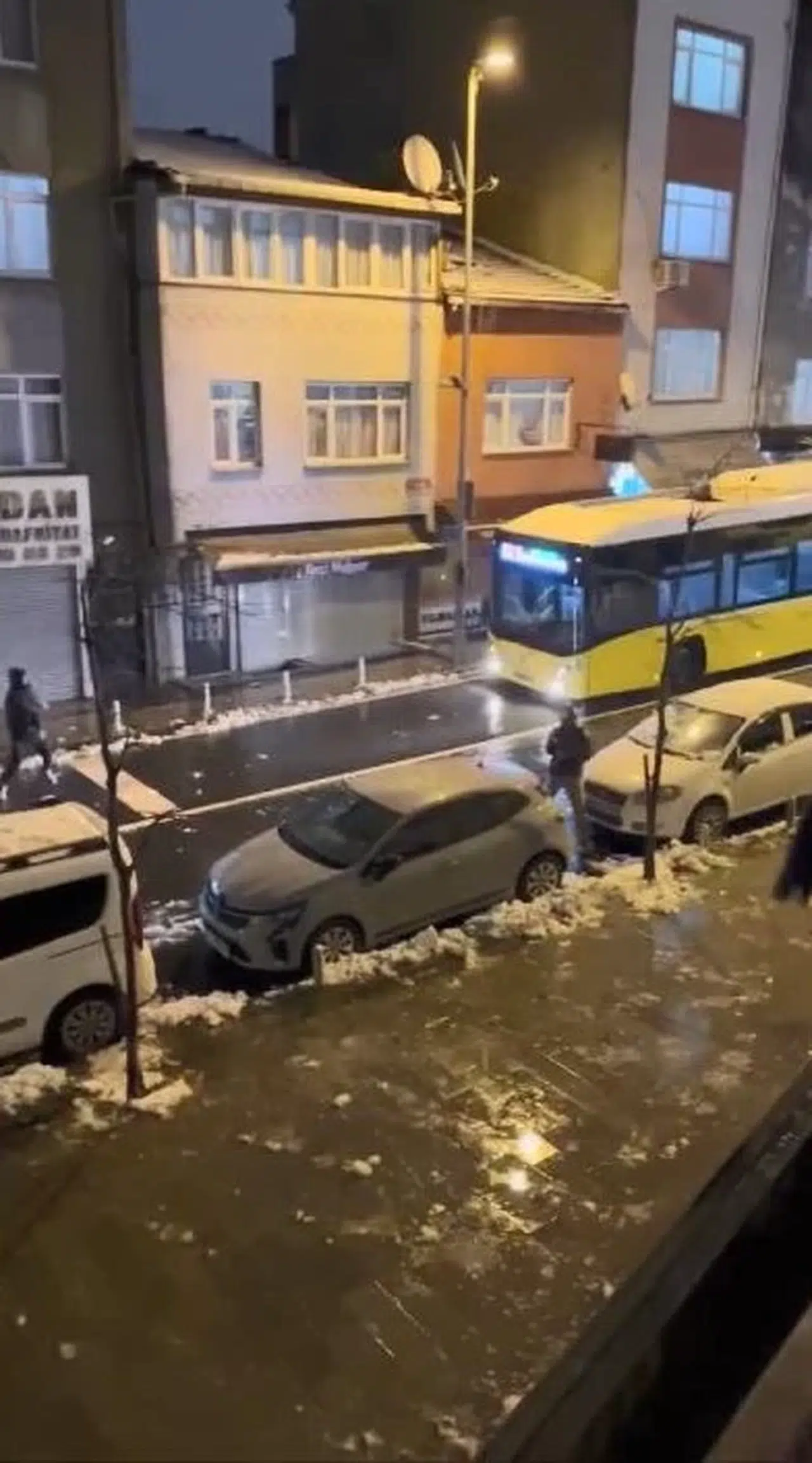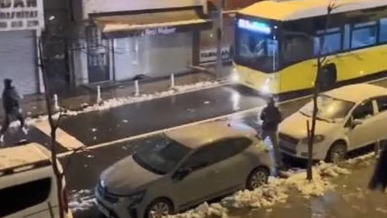 İETT OTOBÜSÜNE KAR TOPU ATIP EĞLENMEYE DEVAM ETTİLER