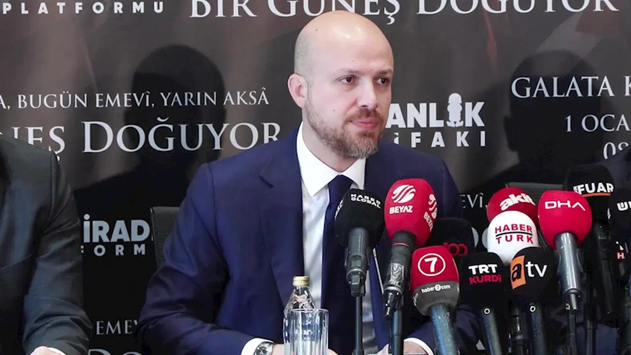 Gülseren KARAPINAR- Harun ŞAHBAZOĞLU / İSTANBUL, (DHA)- TÜRKİYE Gençlik Vakfı (TÜGVA) Yüksek İstişare Kurulu Üyesi Bilal Erdoğan, Milli İrade Platformu tarafından 1 Ocak'ta Galata Köprüsü'nde gerçekleştirilecek Filistin yürüyüşü öncesi düzenlenen basın toplantısına katıldı. Bilal Erdoğan, "İsrail'in Nazist, apartheid rejiminin sürdürdüğü soykırımın sona ermesi için, Filistinli kardeşlerimizin özgürlüklerine kavuşmaları için, 2024 yılı boyunca nasıl sabah 1 Ocak'ta Galata Köprüsü'nde yaptığımız etkinlikten itibaren çeşitli çalışmaların yapılmasını organize ettiysek desteklediysek sesin çıkarılmasına daha çok ses yükseltilmesine vesile olmaya çalıştıysak, inşallah 2025 yılı boyunca da 1 Ocak sabahından itibaren sabah namazlarımızı kılıp hep birlikte Galata Köprüsü'nde çoluk çocuk, ailece toplanıp, 2025 yılı boyunca da bu soykırım ne kadar sürerse sürsün biz de pes etmeden sesimizi yükseltmeye, zalimin zulmünü haykırmaya, mazlumun hakkını savunmaya devam edeceğiz" dedi.