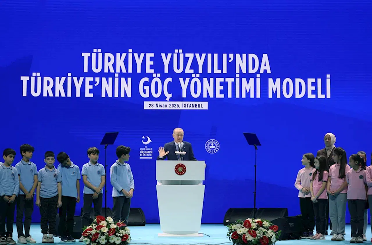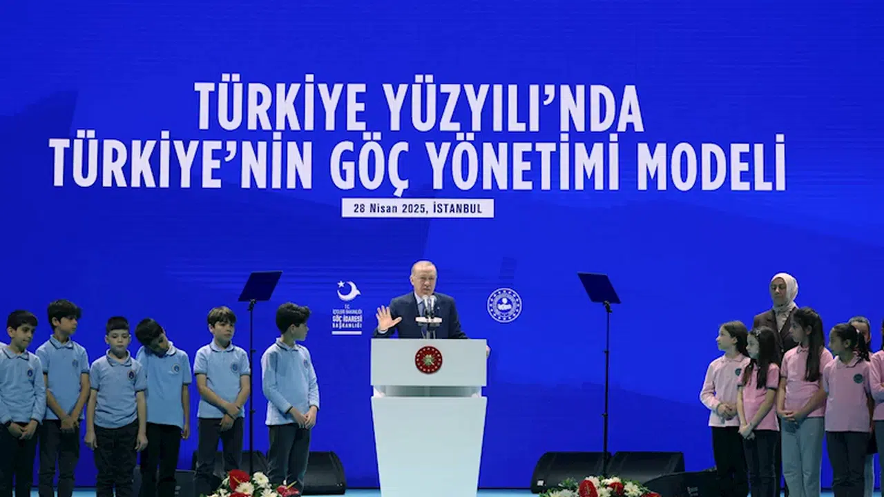 Türkiye Yüzyılı’nda Türkiye’nin Göç Yönetim Modeli programı bugün İstanbul Atatürk Kültür Merkezi’nde gerçekleşti. Programa Cumhurbaşkanı Recep Tayyip Erdoğan'ın yanı sıra İçişleri Bakanı Ali Yerlikaya, İstanbul Valisi Davut Gül, Ak Parti sözcüsü Ömer Çelik, milletvekilleri, bürokratlar, akademisyenler, alanında uzmanlar ve çok sayıda öğrenci katıldı. Program Ali Yerlikaya’nın konuşmasının ardından Türkiye’de yaşayıp Şam’a dönmüş olan Muhammed’in ve onu Türkiye'den uğurlayan arkadaşlarının hikayesinin anlatıldığı video gösterimi ile devam etti.