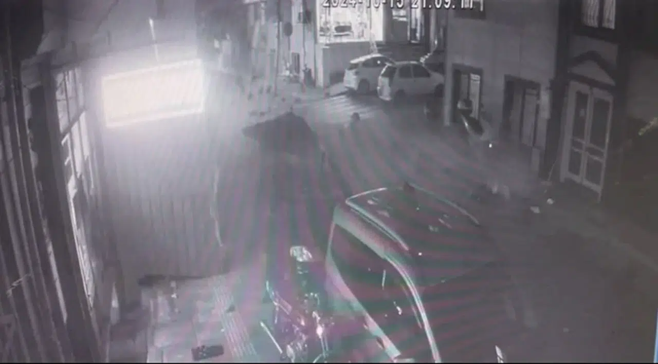 Güvenlik kamerasına yansıyan görüntülerde çatısı çöken binadan beton parçaların park halindeki araçların üstüne düştüğü görülüyor.