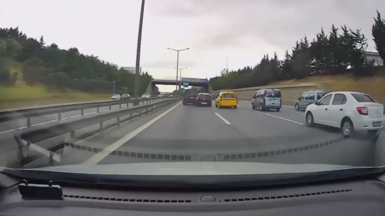 Kaza bugün öğle saatlerinde TEM Otoyolu 5. Levent mevkiinde meydana geldi. Yolda makas atarak ilerleyen bir otomobil, hatalı şekilde sol şeride geçtikten sonra önündeki 2 aracın arasından geçmek için hamle yaptı. Bu sırada araçların arasındaki boşluğun daralması sebebiyle geçemeyen otomobil, sol şeritteki hafif ticari araca çarptı. Kaza sonucu savrulan araçlar, 2 araca daha çarptı. Toplamda 4 aracın hasar gördüğü kaza, başka bir otomobilin araç kamerası tarafından saniye saniye kaydedildi. (DHA)