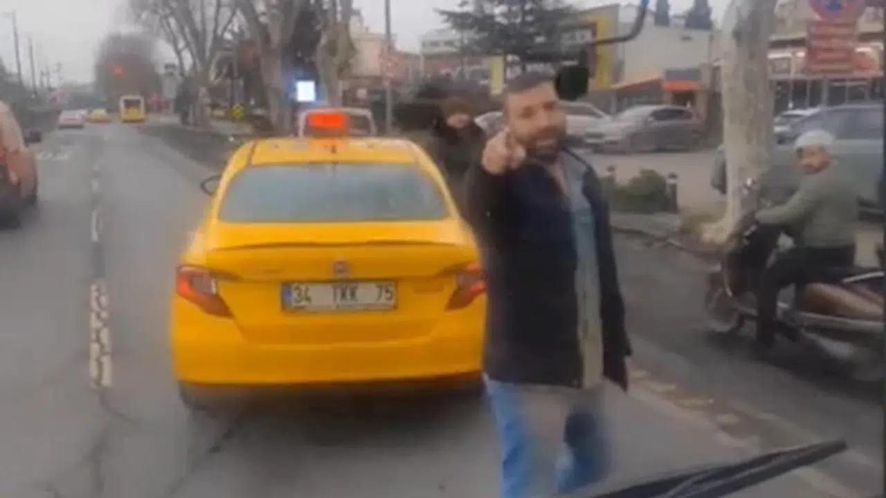 Olayla ilgili konuşan taksi şoförü Ersin Cengiz, “Fındıkzade-Çapa'da yolcumu indirdim çıktım. Normal şeridimde giderken otobüs şoförü önüme kırdı. Ben ışıklarda yanına yaklaşıp 'Ne yapıyorsun' dediğim de bana sinkaflı şekilde küfretti. Sonra ben sorun çıkmasın diye şeridimde devam ederken, beni kaldırımla otobüsün körüğü arasında sıkıştırdı. Ben de anlık bir refleksle önüne kırdım ve indim. Neden böyle bir şey yaptığını sorduğumda el işareti yaptı. Ben de sinirlenerek otobüsün camına bir yumruk vurdum. Ondan sonra gaza basarak otobüsle iki defa üstüme geldi. Sonra sinkaflı küfürler etti. İçeride bir kişi polis olmamasına rağmen kendini polis olarak tanıttı ve 'Alırım seni' dedi. Ben de madem polissen onu neden uyarmıyorsun dedim. Onun otobüste de benim takside de kamera var. Buyursun gelsin davacı olsun" dedi. (DHA)