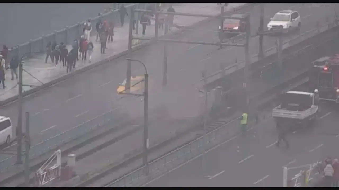 Galata Köprüsü üzerindeki tramvay raylarının elektrik kutularında henüz bilinmeyen bir sebeple yangın çıktı. Yangın nedeniyle tramvay seferleri durdurulurken, ihbar üzerine bölgeye itfaiye ekipleri geldi. Yangın, itfaiyenin müdahalesi ile büyümeden söndürüldü. Teknik ekiplerin bölgedeki çalışmaları devam ediyor. (DHA)