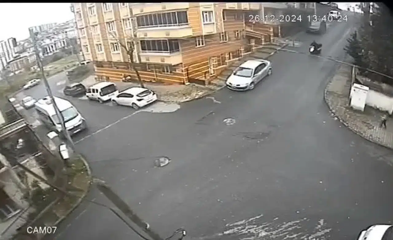 Kaza, 26 Aralık Perşembe günü saat 13.40 sıralarında Karayolları Mahallesi'nde meydana geldi. Yağışlı havanın etkisiyle kayganlaşan yolda ilerleyen motosikletli kurye, sokak girişinde yavaşlamak için fren kullandı. Bu sırada kayarak devrilen motosiklet metrelerce sürüklendi. Kazayı görenler motokuryenin yardımına koştu. Motokurye haber verilmesi üzerine olay yerine gelen sağlık ekipleri tarafından ambulansla hastaneye kaldırıldı. Kaza anı çevrede bulunan güvenlik kamerasıyla kaydedildi. (DHA)