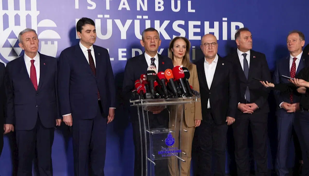 CHP Genel Başkanı Özgür Özel Demokrat Parti lideri Gültekin Uysal ile görüşmesinin ardından gazetecilere açıklamalarda bulundu. Özel "Sizlerin de takip ettiği gibi, dün sabah o kötü haberleri aldığımız andan itibaren İstanbul’a geldik. Sayın Ekrem İmamoğlu ve belediye başkanlarımız, Beylikdüzü Belediye Başkanımız, Şişli Belediye Başkanımız ve 100'ün üzerinde arkadaşımız gözaltına alındığından itibaren İstanbul'a geldik. Sayın Dilek İmamoğlu'na geçmiş olsun ziyaretinden sonra Saraçhane’ye geldik ve İBB'nin Saraçhane'deki binasında o andan itibaren ayrılmaksızın burada bulunuyoruz" dedi.