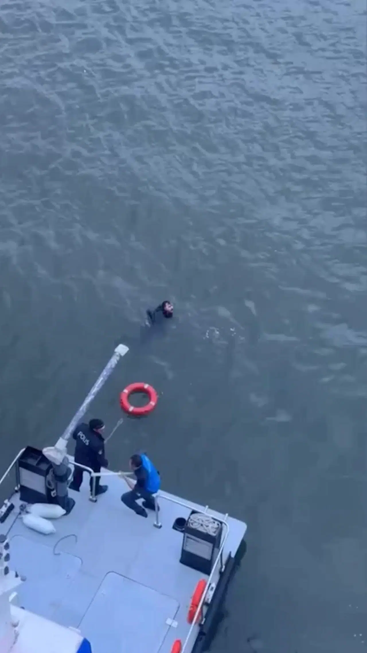 Olay, dün saat 17.30 sıralarında Haliç Metro Köprüsü’nde meydana geldi. Edinilen bilgiye göre 1 kişi metro köprüsünün korkularından Haliç’e düştü. Denizde hareketsiz duran adam için vatandaşlar polis ekiplerine ihbarda bulundu. İhbar üzerine olay yerine gelen Deniz polisi, Haliç'e düşen adamı kurtarmak için çalışmalara başladı. Tekneyle denize düşen adamın yanına giden polis ekipleri adamı kurtardı. Tekneye alınan adam ilk müdahalesinin ardından ambulansla hastaneye kaldırıldı. Kurtarma anları ise cep telefonu kamerasına yansıdı.(DHA)