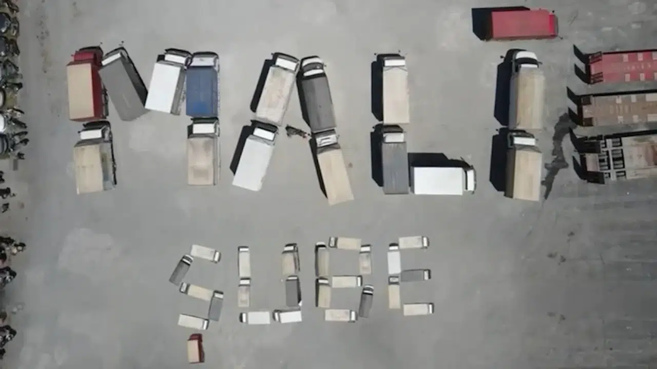 -Malzemelerin yüklü olduğu kamyonlardan görüntüler