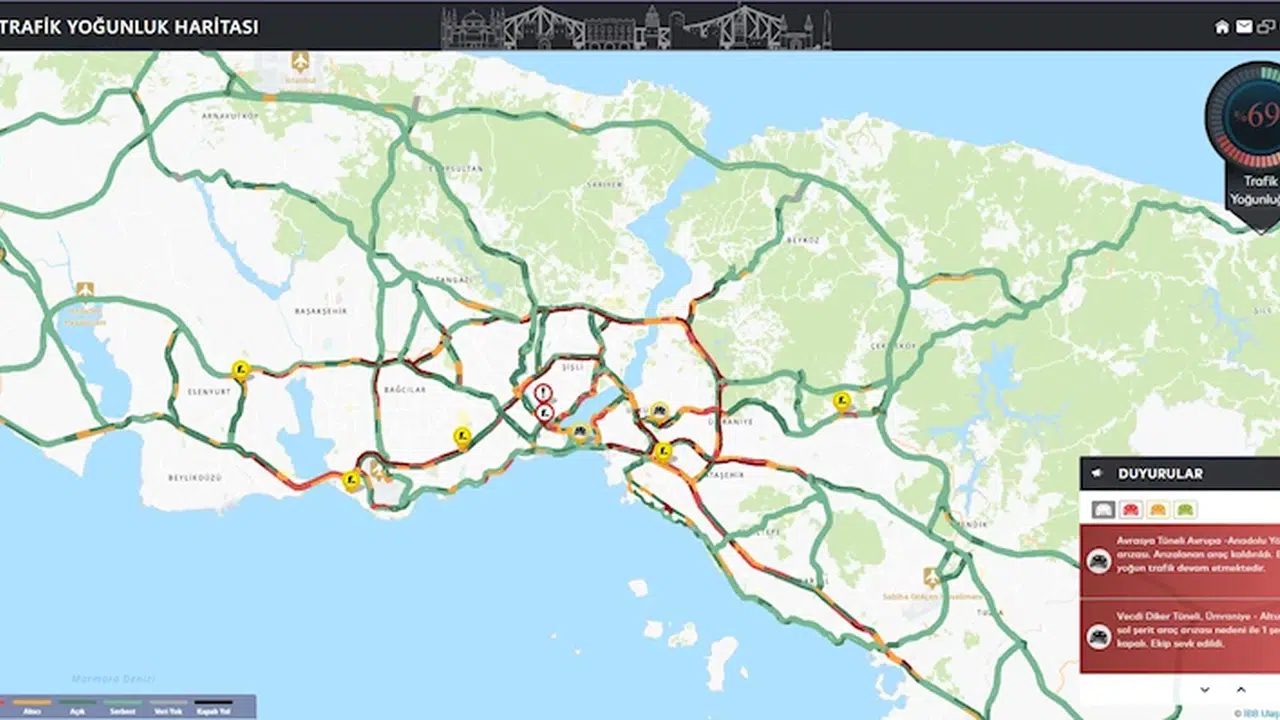Doğan Can CESUR - Ulaşcan ÖZER/İSTANBUL,(DHA) - İSTANBUL trafiğinde bayram için memleketlerine gidenlerin oluşturduğu trafik yoğunluğu devam ediyor. Megakentte trafik yoğunluğu saat 20.25 itibariyle yüzde 69 olarak ölçüldü. Avrupa Yakası'nda D-100 Karayolu PERPA mevkiinde, Anadolu Yakası'nda ise Göztepe Köprüsü mevkiinde araçların güçlükle ilerlediği görüldü. (DHA)