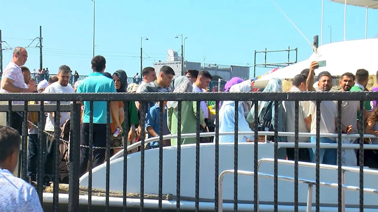 Eminönü’nde bayram tatilinde boğaz turu yapmak isteyenler büyük yoğunluk oluşturdu. Tatil ve güzel havayı gezerek değerlendirmek isteyen turistler ve İstanbullular, boğaz turu yapmak için Eminönü iskelelerine geldi. Bayram tatilini İstanbul’u gezerek değerlendiren Serdar Çelik, "Fethiye’den geldik bayram tatili için. Boğaz turu yapacağız. Bayağı da bir yoğunluk var, kalabalık var. Aslında biz daha sakin olur diye geldik ama umduğumuzu bulamadık, bayağı kalabalık çünkü. Bir buçuk saat sürüyormuş, 150 TL. Bence gayet makul. Makul fiyat yani çok da abartılı değil. Biz de sıra bekliyoruz, kalabalık. Bu gitti ikinci gemiyi bekliyoruz daha tenha olsun diye." dedi.