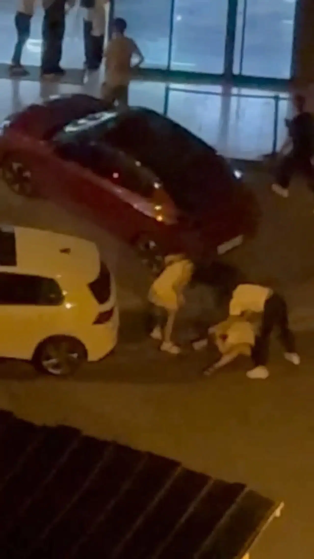 Kadının darbedildiği anlar, çevredekilerin cep telefou kamerasına yansıdı. Görüntülerde, yerde oturan kadının 2 kadın tarafından darbedildiği anlar görülüyor. Darbedilen kadının 'Bırak beni' diye bağırdığı anlar da görüntülerde yer alıyor. 2 kişinin yere düşen kadını darbetmeye devam ettiği sırada 2 kişi araya girerek kavgayı sonlandırıyor.