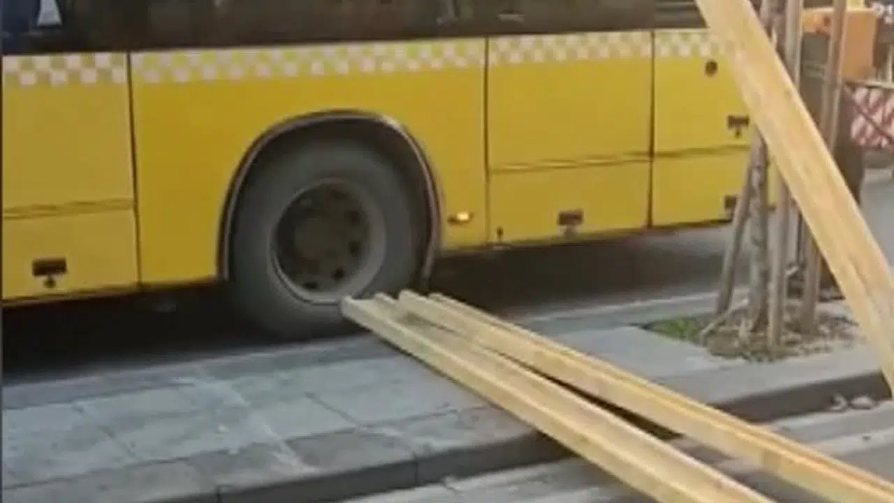 Olay, dün Kartal'da Kordonboyu Mahallesi Şehzade Caddesi'nde meydana geldi. İETT otobüsü caddede seyir halindeyken, o sırada inşaat halinde olan binadan inşaat kalasları otobüsün üzerine düştü. Otobüste hasar meydana gelirken, şans eseri yaralanan olmadı. Yolcular, güvenlik önlemiyle tahliye edilirken, cadde üzerinde kısa süreli trafik meydana geldi. İhbar üzerine olay yerine itfaiye ekibi sevk edildi. O anlar bir vatandaşın cep telefonu kamerasına yansıdı.